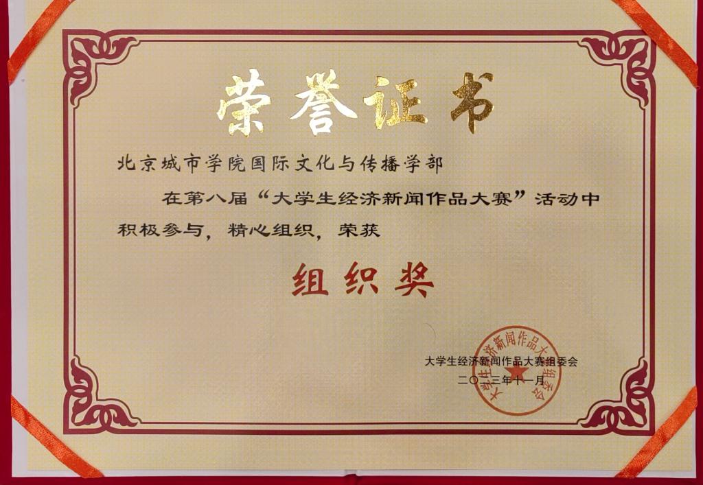 11月25日,第十届全国经济新闻改革与发展研讨会暨第八届大学生经济新闻作品大赛颁奖会在京召开,我校文传学部传播系2019级传播学专业张静伦同学的作品《出了火车站就进招工站 多个沿海大省开启“抢人”模式》荣获“新闻报道类”一等奖,(指导老师:传播系李升科教授),文传学部获得大赛优秀组织奖。