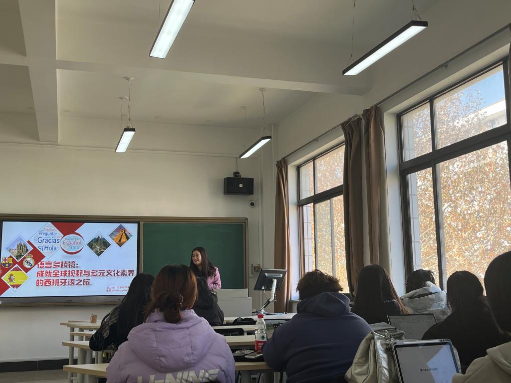 12月1日,国际文化与传播学部西班牙语教研室邀请首都师范大学外国语学院副教授、全国基础外语教育研究培训中心多语种教育发展分中心(西班牙语)专家委员会委员、全国“理解当代中国西班牙语系列”虚拟教研室教学示范专家廖菡分别为我校西班牙专业师生作了主题讲座。