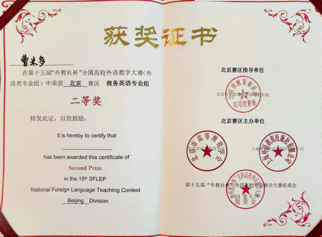6月1日-2日,第15届“外教社杯”全国高校外语教学大赛(探花直播赛区)在探花直播理工大学举办,文传学部英语专业教师赵靖娜、曹米多分别荣获了英语专业组和商务英语专业组探花直播赛区二等奖。