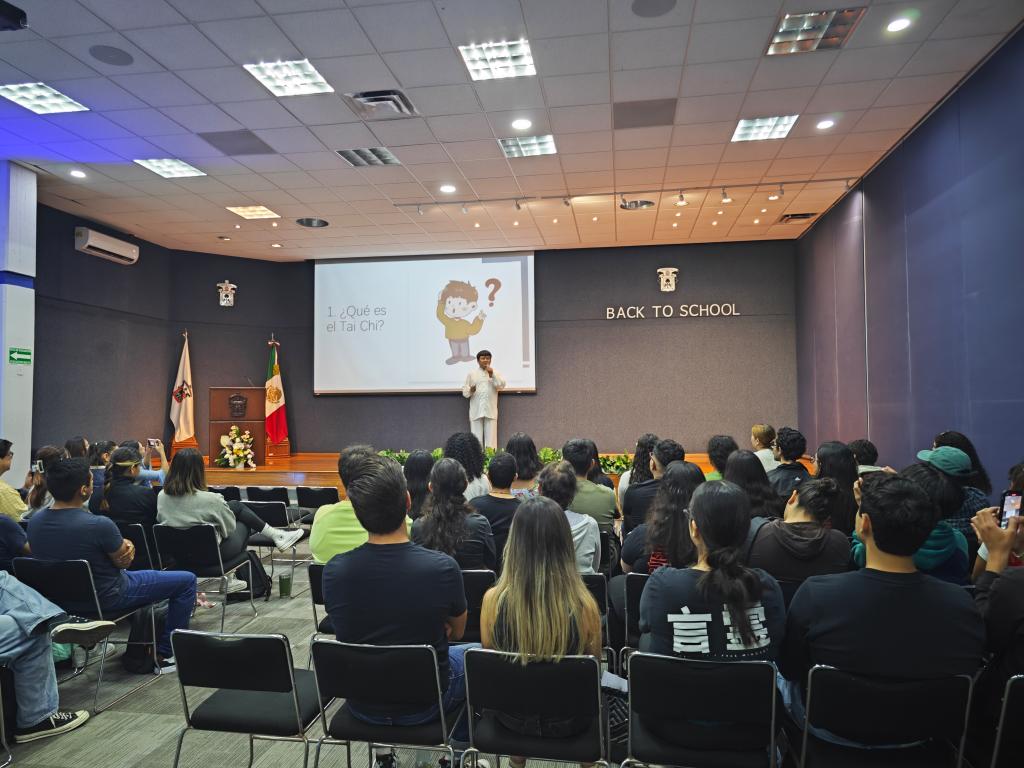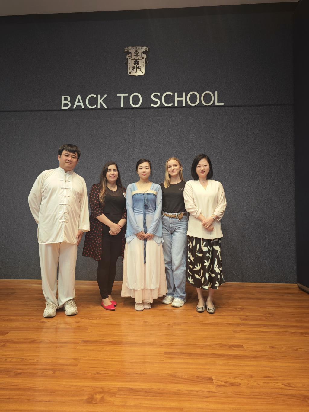 在开学仪式上,孔院志愿者教师李雪鸣以一段优美的中国古典舞《明月几时有》作为活动开场,典雅的舞姿,独特的中国意境引人入胜。公派教师张昊为在场师生带来了一场太极文化讲座。他深入浅出地讲解了太极文化中的阴阳概念,令在场的学生对这一古老的文化有了更加深刻的理解。讲座最后,张老师还带领学生们进行了一场互动,现场反响热烈。