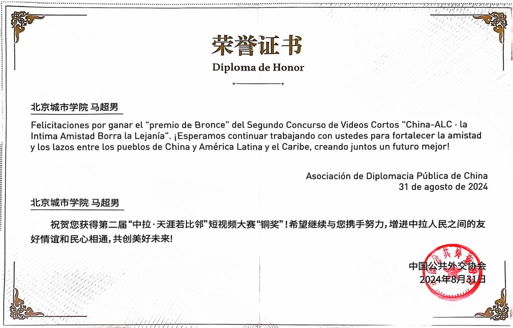 第二届“中拉•天涯若比邻”短视频大赛于近日结束。文传学部戏剧与影视(广播电视编导)专业研究生马超男创作的《探花直播寻梦记》获得铜奖。