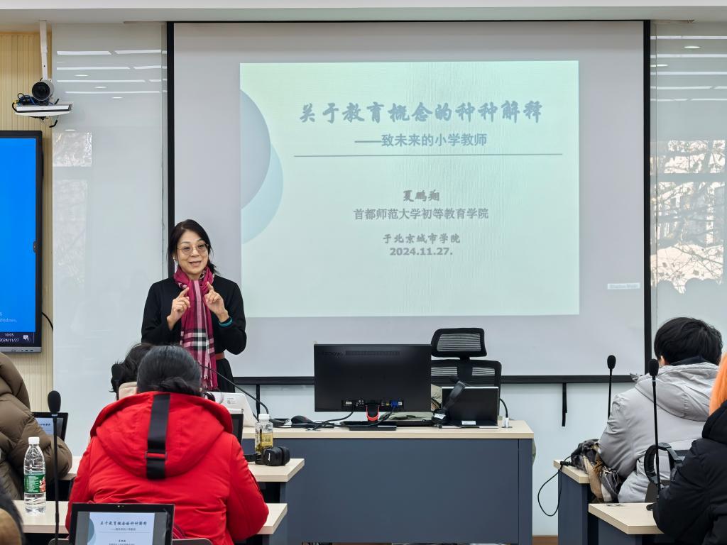 2024年11月27日,我校国际文化与传播学部小学教育(贯通)专业,有幸邀请到首都师范大学初等教育学院夏鹏翔教授,就“关于教育概念的种种解释——致未来的小学教师”为主题,与同学们进行专业导论讲座的交流分享。