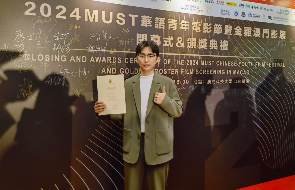 11月30日,2024 MUST华语青年电影节暨金鸡影展(澳门站)在澳门科技大学举行。本届MUST华语青年电影节征片得到海内外多个国家和地区高校及社会公众的热切响应和积极参与,收到各类报名作品561部,经本届电影节初评委员会多轮讨论,最终遴选出纪录短片入围作品13部,我校文传学部师生担任主创的纪录片作品《月光外的男孩》成功入围纪录短片单元。戏剧与影视(广播电视编导)专业2022级研究生张梁作为导演代表受邀参加并出席颁奖礼。