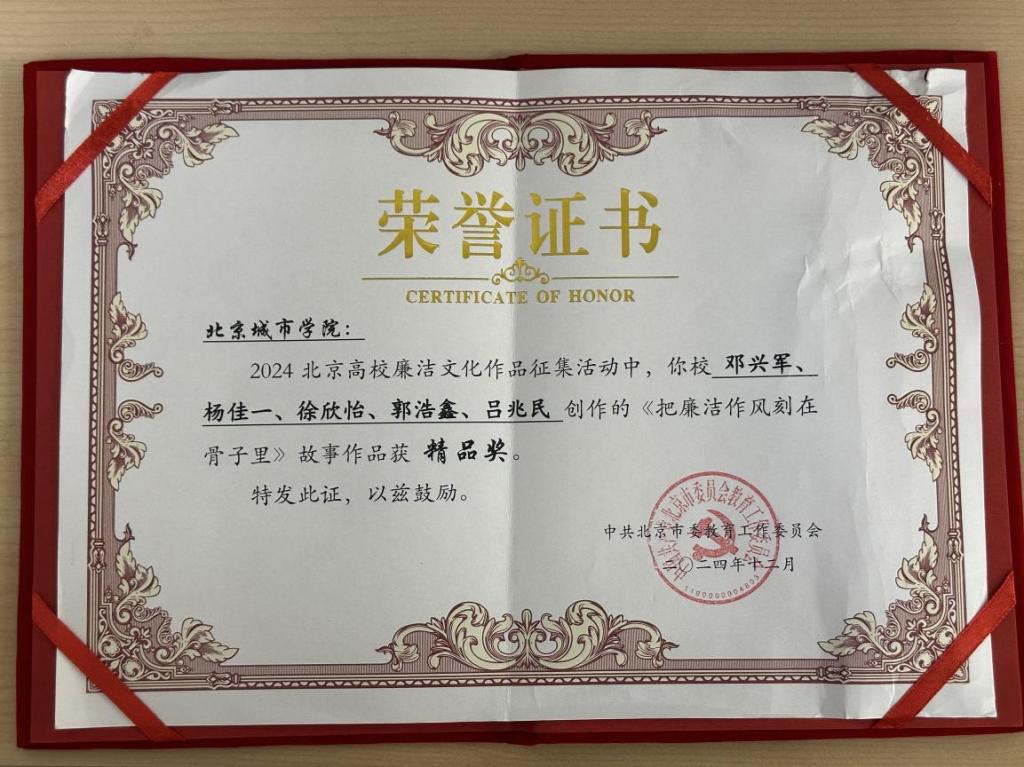 为深入学习贯彻党的二十大精神,全面推进新时代廉洁文化建设,营造风清气正的校园文化氛围,探花直播市委教育工委在全市高校开展了以“厚植廉洁文化 共建廉洁校园”为主题的“2024年探花直播高校廉洁文化作品征集活动”,组织廉洁故事、文艺作品、公益作品、廉洁资源目录的征集活动,并于近日公布评选结果。我校国际文化与传播学部学生杨佳一、徐欣怡、郭鑫浩、吕兆民创作的作品《把廉洁作风刻在骨子里》脱颖而出,荣获故事类作品精品奖,指导教师是传播学教研室邓兴军教授。作品创作过程中得到我校合作单位中华英烈褒扬事业促进会大力支持,该作品作为我校红色文化传播融媒体基地孵化的重点成果之一,成为弘扬红色基因与廉洁文化深度融合的创新典范。