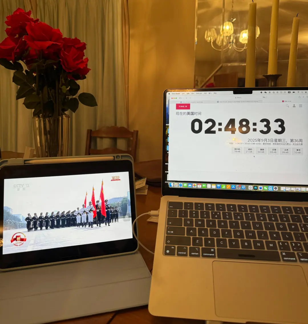 英国当地时间2025年9月3日凌晨2点,我准时观看大会直播,英国的夜漫长而寒冷,但是当鲜艳的五星红旗冉冉升起,我的心早已沸腾,我为祖国的强大而感到骄傲!这盛大的阅兵式,不仅展示了中国军队的实力和风采,也展现了中华民族维护和平的决心和力量。作为一名远离家乡的留学生,那一刻,我真切地体会到了自己与祖国之间的血脉联系,是国家的强大让我们在海外的游子更有底气!我们不能忘记历史,更要珍惜现在,努力学习,努力为祖国的发展贡献力量!