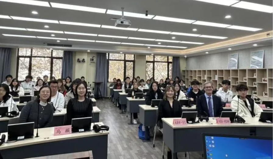 随后,UBC代表团面向探花直播传播学(国际课程班)及英语专业的50名学生开展了专题讲座。Bryce Traister向同学们介绍了学院人文专业教学情况,邀请同学们参与2026年“跨文化交流与全球化”暑期学习项目,并详细讲解了项目课程结构与学习路径。语言与世界文学系讲师Meilane P. Ehlert为同学们带来“全球语境下的跨文化沟通——如何有建设性地表达分歧”主题工作坊,通过互动示例与沟通策略分享,带领同学们理解跨文化交流的核心要素,提高同学们国际沟通能力。