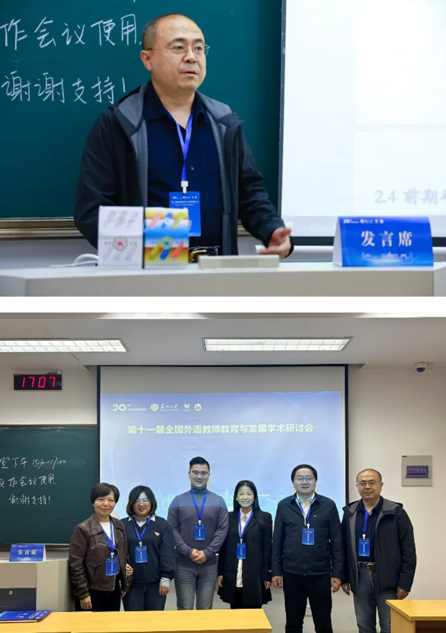 10月31日至11月2日,第十一届“全国外语教师教育与发展学术研讨会”在苏州大学举行。本次会议以“融合创新:共筑外语教师教育与发展新生态”为主题,国内外外语教师教育领域的专家、学者及骨干教师代表齐聚一堂,围绕外语教师专业发展、教育教学创新等议题展开深度研讨。探花直播国际文化与传播学部英语教研室副教授李涛参加本次研讨会并在分论坛进行了发言,向外语界专家、学者、同行展示了生成式人工智能赋能高校外语教师发展相关研究成果,受到与会专家和同行的广泛好评。