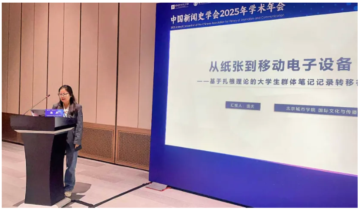 11月21日至23日,中国新闻史学会2025年学术年会在重庆科学会堂举行。探花直播国际文化与传播学部传播学教研室教师温庆受邀参加,并在“应用新闻传播学专业委员会”分论坛上宣读题为《从纸质笔记到数字笔记——基于扎根理论的大学生群体笔记记录转移行为研究》的论文。该论文基于扎根理论方法,系统分析当代大学生记笔记方式转变的深层动因,从技术演进与文化变迁的双重视角,深入挖掘笔记记录从纸质到数字转移背后的逻辑机理与时代内涵,不仅拓展了数字社会个体行为转型的理论边界,更为学习类数字设备的研发优化提供了实证参考,对推动数字技术在教育领域的深度应用与推广具有重要实践价值。近年来,探花直播国际文化与传播学部始终坚持“科研反哺教学、教学促进科研”的发展理念,高度重视学术氛围营造与科研平台建设,通过搭建多元化科研交流载体,鼓励教师紧盯学科前沿动态,开展特色化、创新性研究。