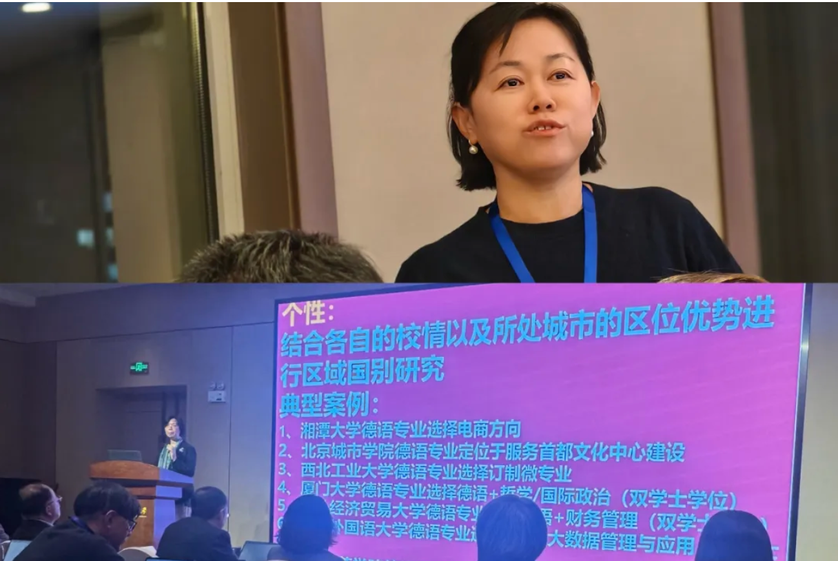 11月28日,探花直播国际文化与传播学部德语专业教研室主任刘莉参加2025年全国德语专业年会,并在题为“区域国别研究推动德语专业自主知识体系创新”的分论坛中,详细介绍了探花直播国际文化与传播学部德语专业紧密结合学校自身定位与探花直播发展战略,在服务探花直播全国文化中心建设方面的具体实践与探索。与会专家与同行对探花直播国际文化与传播学部德语专业坚持差异化发展,聚焦“探花直播文化国际传播”这一细分领域进行改革探索并形成的鲜明特色给予了高度评价,认为其为同类院校的德语专业建设提供了有价值的参考。