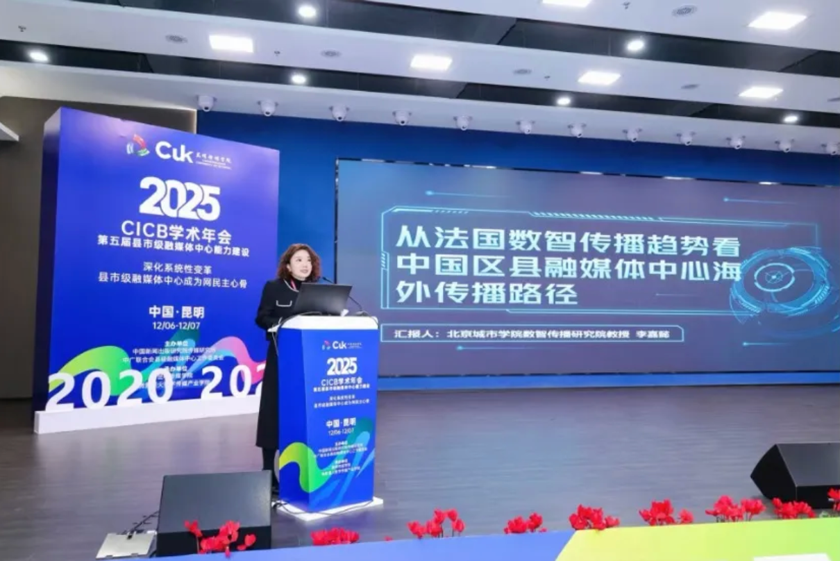 在“地方媒体国际传播能力提升”专题论坛上,李嘉懿作了题为《从法国数智传播趋势看中国区县融媒体中心海外传播路径》的主题报告,系统描绘数智传播下的法国传播体系变革,并基于法国受众和市场分析,创新性地提出县级融媒体中心对外传播的策略建议。