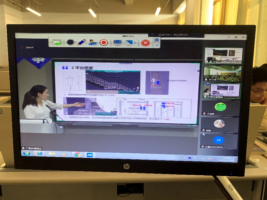 11月9日,来自广联达的两位资深工程师杨雨丝、杜鑫与学部教师为我校2021级建筑学专业学生系统介绍了专业相关技术规范,利用前沿的视觉媒体技术提升学生对理论课程的兴趣并建立起理论知识与实践应用之间的关系。同时,借助虚拟仿真教学系统,利用多角度场景的虚拟现实展现,让学生在三维图示中清晰地理解并掌握各种设计方法和无障碍设施的布置方式。