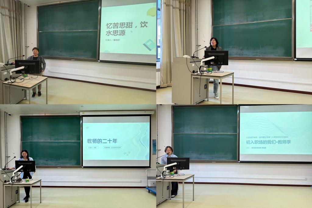 首先,学部即将退休的董晓丽老师进行交流,她以“忆苦思甜,饮水思源”为题分享了从教25年的“苦”与“甜”。然后,从教20年、10年的教师代表刘蕊和于艳卿,围绕从教以来的自我成长、对学生和讲台的热爱、对教学的不忘根本以及教师间暖心互助等方面进行交流。最后,新教师代表侯晓萱以“初入职场的我们教师季”为题分享了对学校与学部的初印象,对第一节课的初感悟,以及对未来发展的初设想。整场活动充满温情、感动和欢笑。