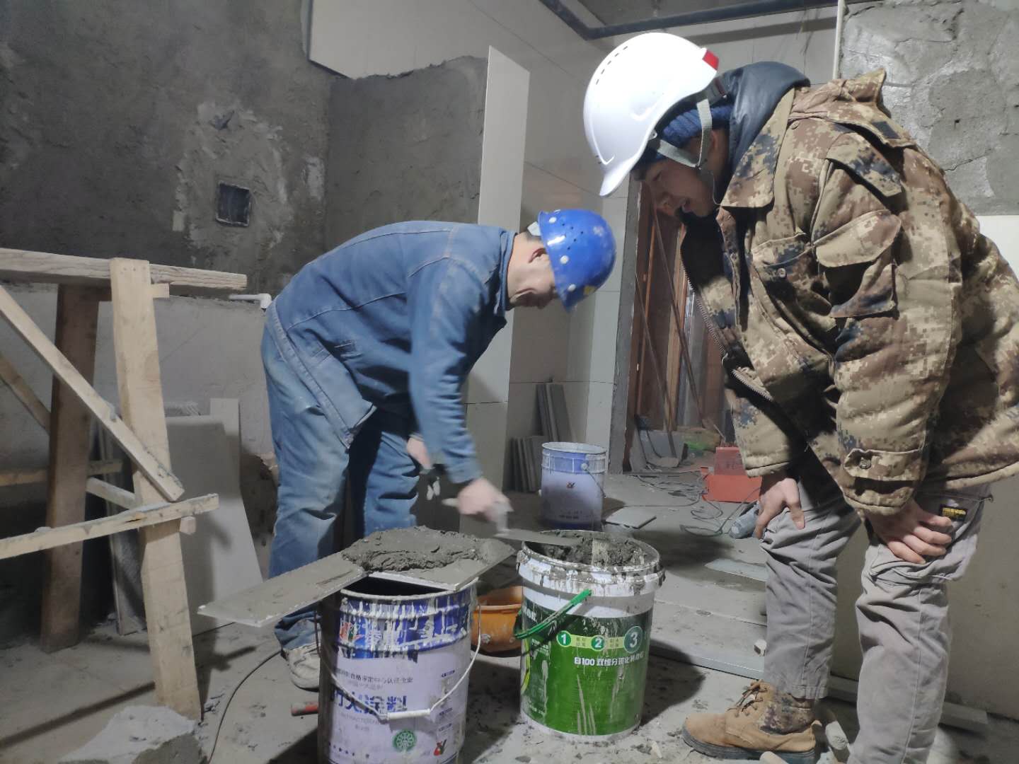 与工人师傅交流施工要点