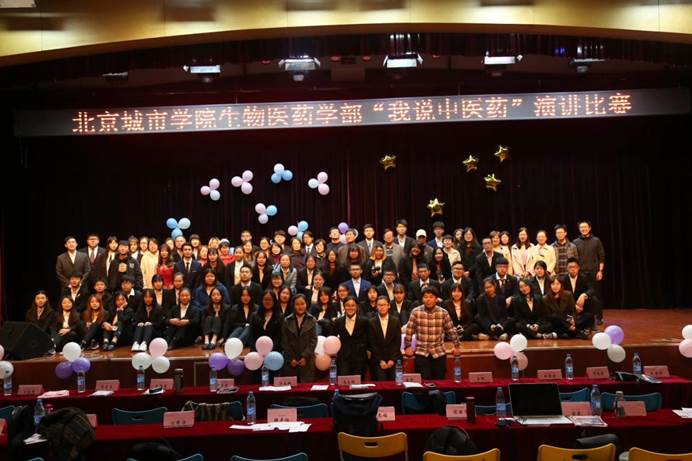 2018年10月22日18:00,由生物医药学部药学综合教研室主办,北城义校航天城分会,中药社团联合承办——首届“我说中医药”演讲比赛在航天城校区多功能厅举办。校工会主席庞东辉,学管党支部书记郭宇君,公管团总支书记王豪男及药学综合教研室教师担任此次比赛评委。