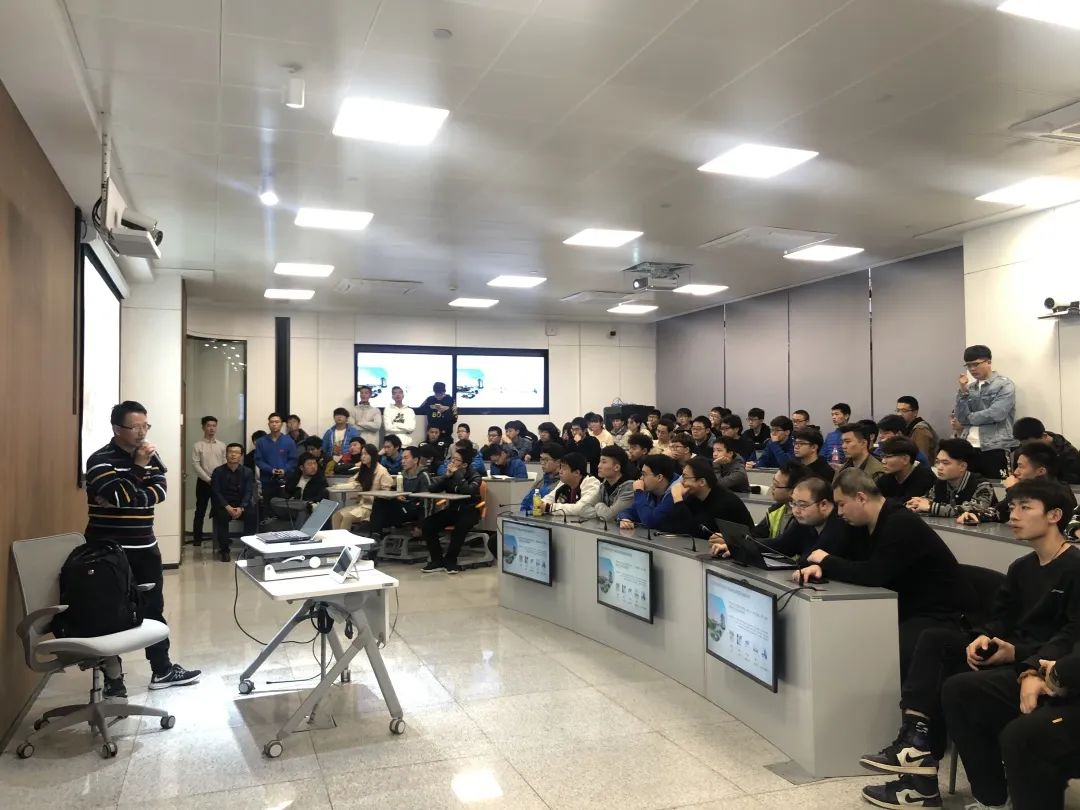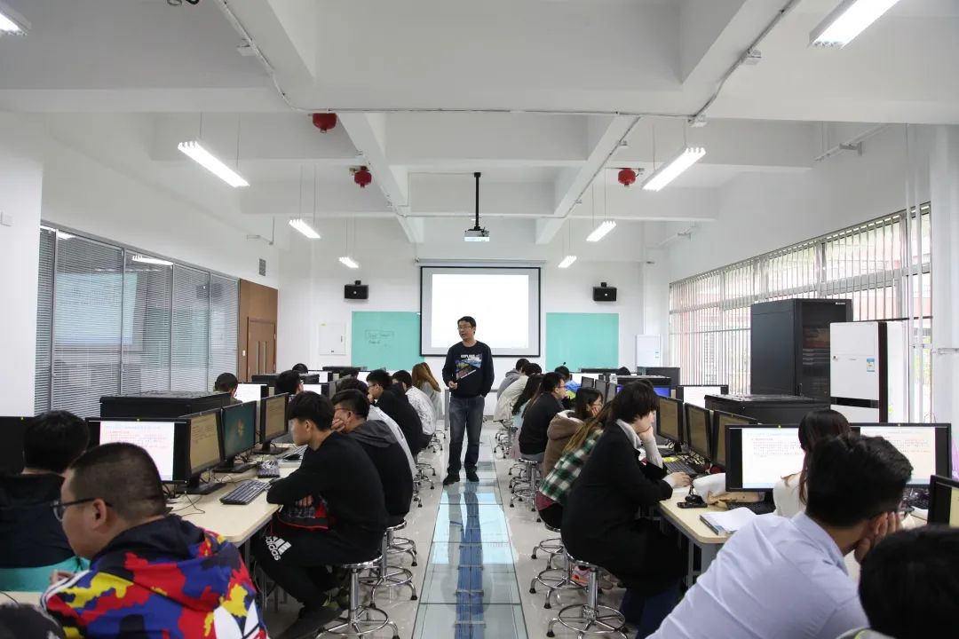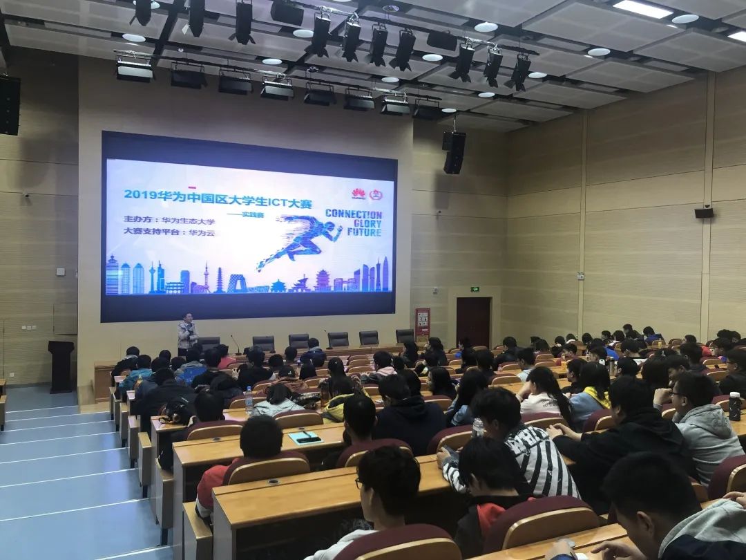 依次是:华为中国区大学生ICT大赛探花直播赛区参赛师生(图一)、初赛现场(图二)、华为公司针对华为认证工作的介绍宣传(图三)、华为大赛讲座(图四)