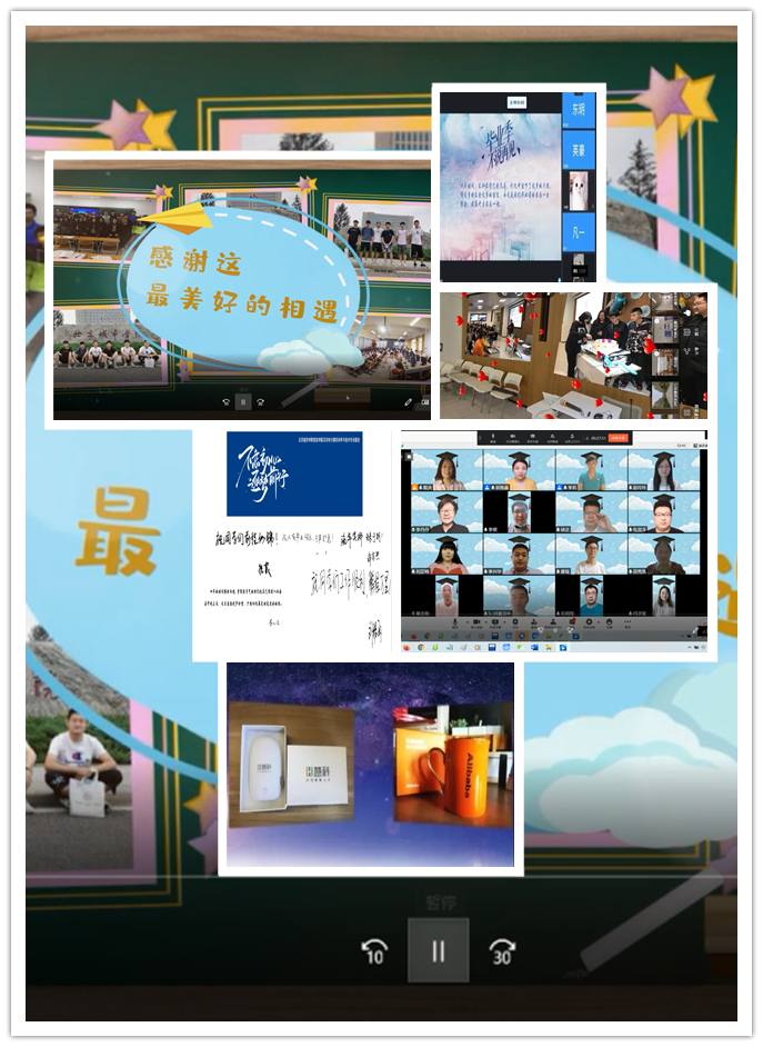 专业课教师,辅导员,宿管老师,毕业生家长,工作室,团总支,学生会,18级同学中的代表们都在视频中送出了对毕业生的祝福,拉开了典礼的序幕!