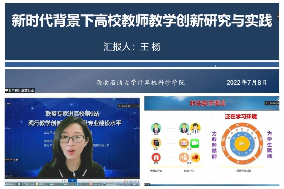 会上,西南石油大学计算机科学学院院长、国家一流课程负责人、国家级教育教学成果一等奖、首届全国高校教师教学创新大赛正高组一等奖与教学设计创新奖获得者王杨教授做了主题为“新时代背景下高校教师教学创新研究与实践”的交流报告。