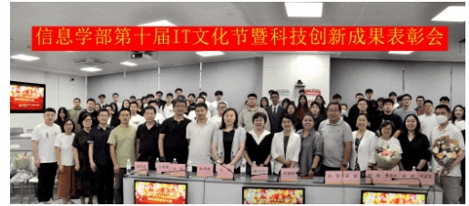 6月13日,信息学部举办第十届IT文化节暨科技创新成果表彰会。信息学部主任王辉,党支部书记张明春,学部副主任刘雪梅、李丹丹、刘亚军,学工办主任孙艳,各专业教研室主任、教师代表和学生代表参加表彰会。