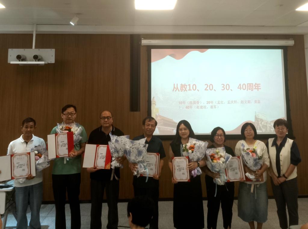 在全体教师座谈会上,学部特别为光荣从教满10年、20年、30年、40年的“教坛坚守者”和学生最喜欢的“十佳教师”举行了表彰仪式。当承载着敬意的鲜花与烫金的光荣证书递到教师手中时,现场响起阵阵掌声。这不仅是对教师们数十年如一日坚守讲台、深耕育人的肯定,更彰显了学部对 “立德树人” 初心的传承。一张张证书背后,是无数个日夜的备课授课、是对学生成长的悉心陪伴,更是信息学部教育事业发展的坚实足迹。