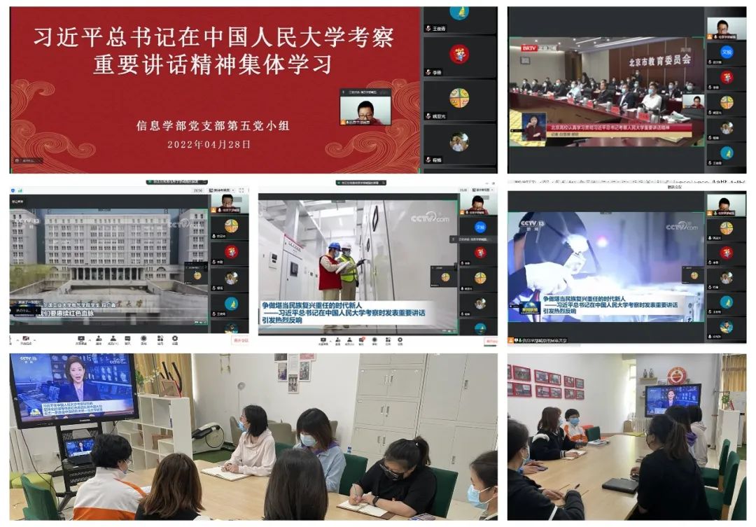 信息学部党支部将切实把学习总书记在中国人民大学考察时的重要讲话精神作为当前时期重要任务,丰富载体、创新方法,确保学习和宣传实效。