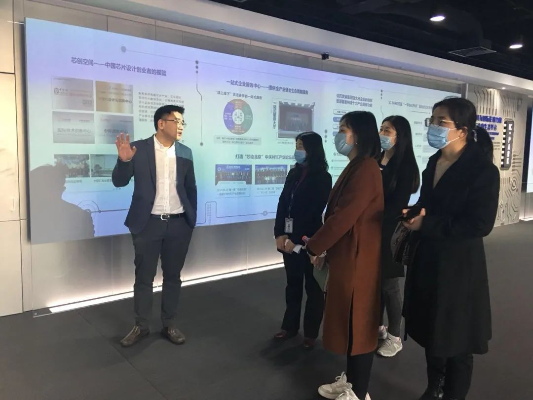 在活动中首先由宗凤英总监带领大家参观IC PARK科技馆,董璐部长介绍了中关村集成电路设计园的发展历程、组织架构和服务宗旨等情况,重点讲解了现已入住的80多家企业公司、代表性芯片产品等基本情况,以及IC集成芯片的技术发展、设计研发、生产流程、制作工艺等情况。