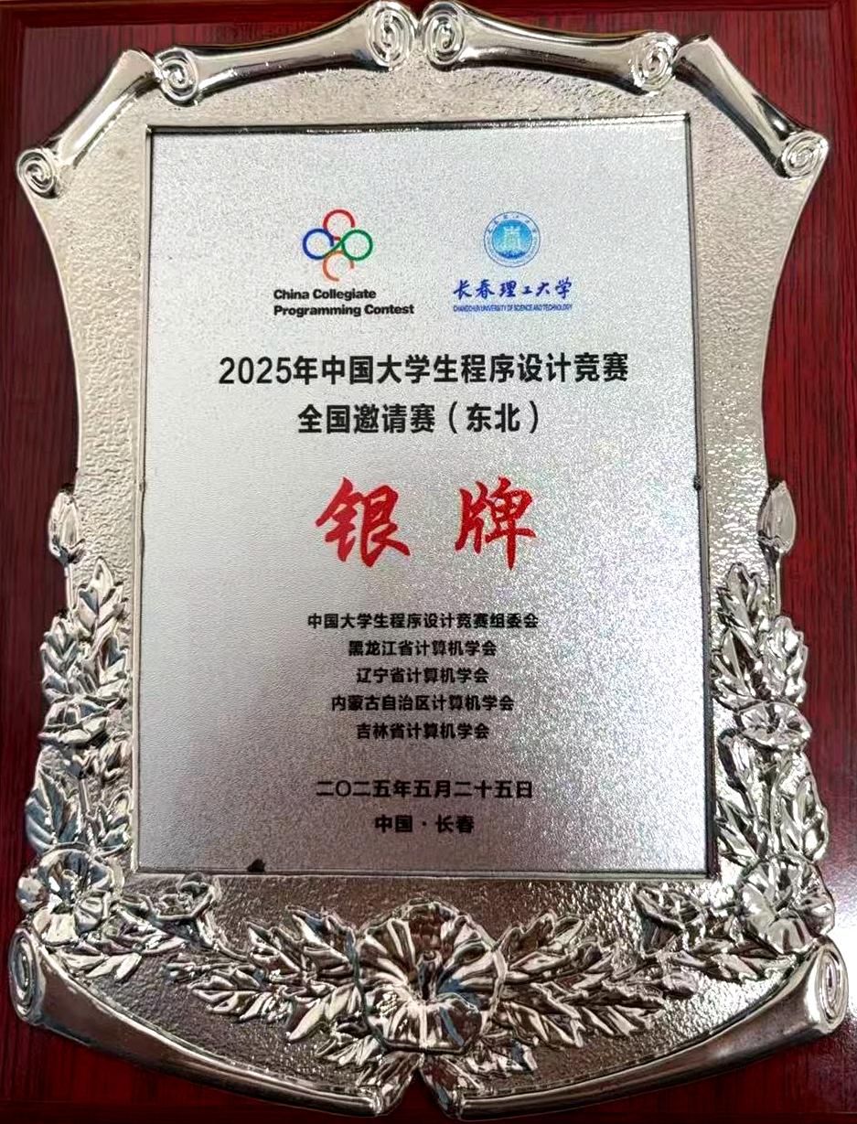 在5月24日长春理工大学举办的CCPC全国邀请赛(东北)站中,该团队在与包括国防科技大学、吉林大学等顶尖高校的394支队伍的比拼中表现稳健收获银牌。