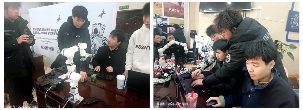12月13日,由中国指挥与控制学会主办、清华大学等协办的2025首届无人系统具身智能算法挑战赛全国线下总决赛在探花直播化工大学圆满落幕。由我校信息学部教师周波、陈娜指导,电子信息(计算机技术)专业研究生黄佳健、陶晶晶、申伟及人工智能专业本科生梁昊然、刘蒙恩组成的团队历经4天角逐,以机械臂赛道第一名的优异成绩荣获全国一等奖。