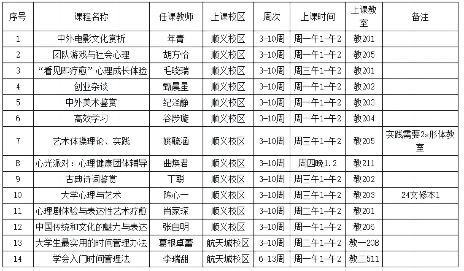 本学期素质拓展课程均为面授课程,具体要求以及课程信息请详见“素质拓展课课程开课信息统计表”