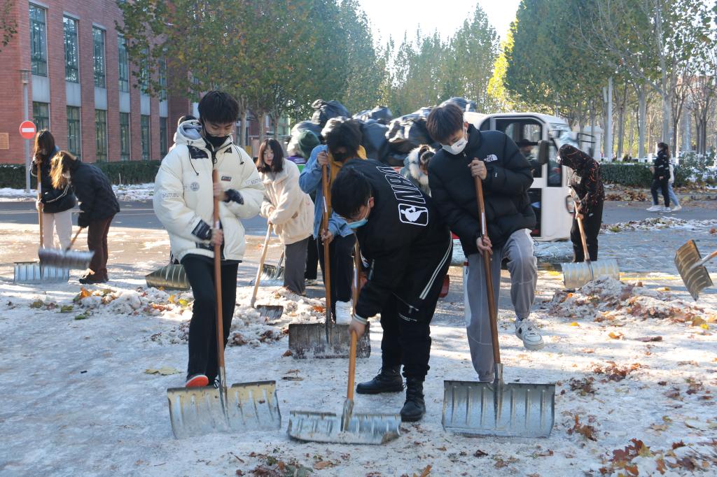天气的寒冷挡不住志愿者们的热情,大家干劲十足,扫雪队伍成了冬日北城一道靓丽的风景线。经过几个小时的奋战,校园内的积雪基本都被清除干净,安全隐患大大减少。