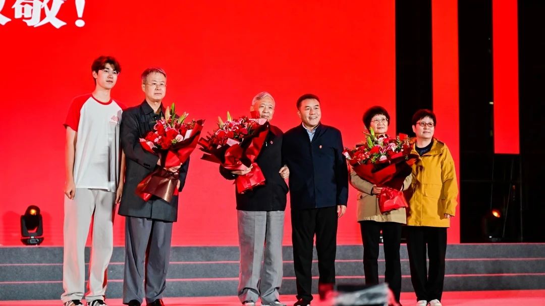 学校特邀北城创办者代表段柄仁,首批教师代表、学校原副校长冉楠和第一届学生代表施树嘉三位师长共襄盛典,段柄仁先生为大家献上了一堂深刻而感人的校史教育课,校党委书记龚裕、常务副校长田培源携学生代表向三位师长献花致敬。