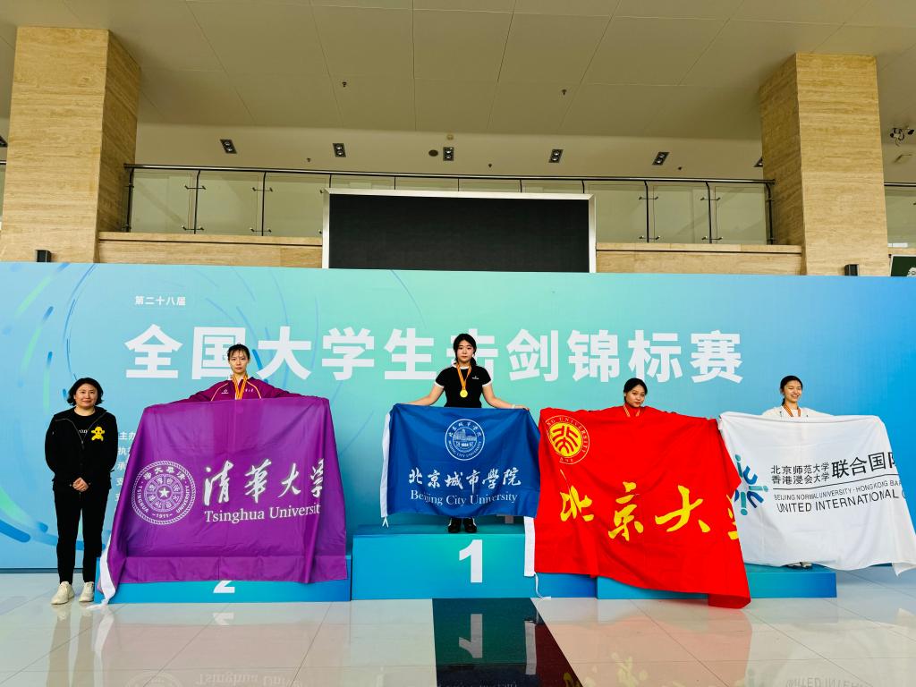 在学校体委和团委的精心组织下,于佳欢老师担任领队,来自国际文化与传播学部24传播本(国际课程班)的张益同学在一场场比赛中赛出风格、赛出水平,成功夺得女子佩剑甲组个人冠军。