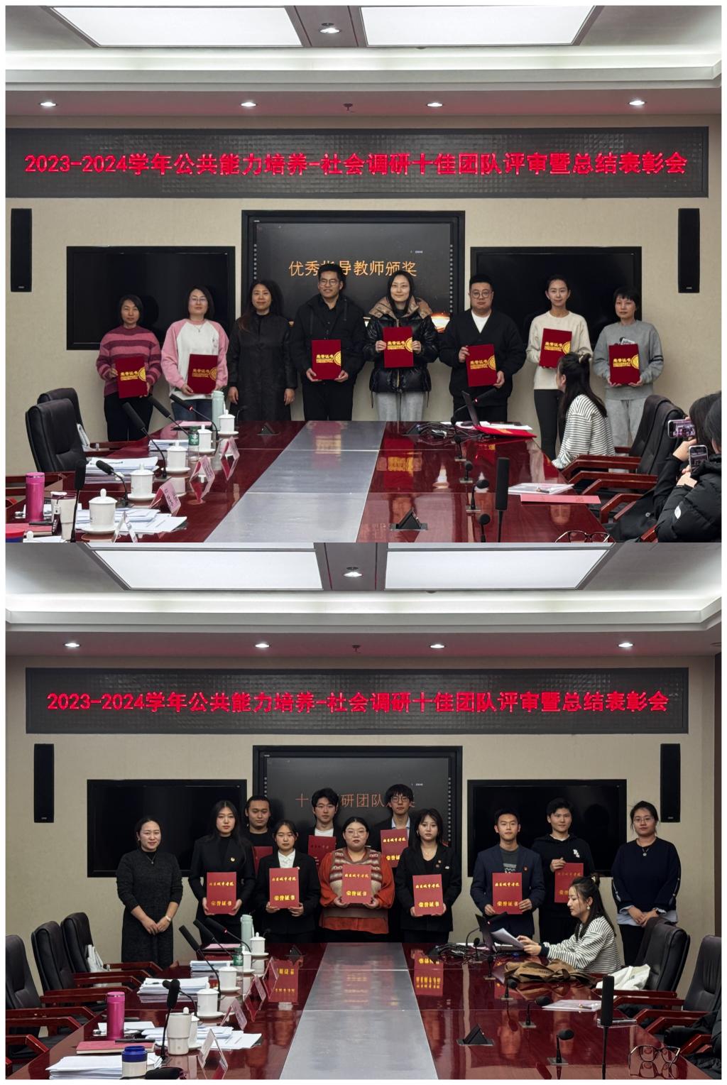 表彰环节,由王毅琳老师和毛晓瑞老师为获评2023-2024学年暑期公共能力调研十佳调研团队的代表进行颁奖,陈怡老师为优秀指导教师代表进行颁奖。